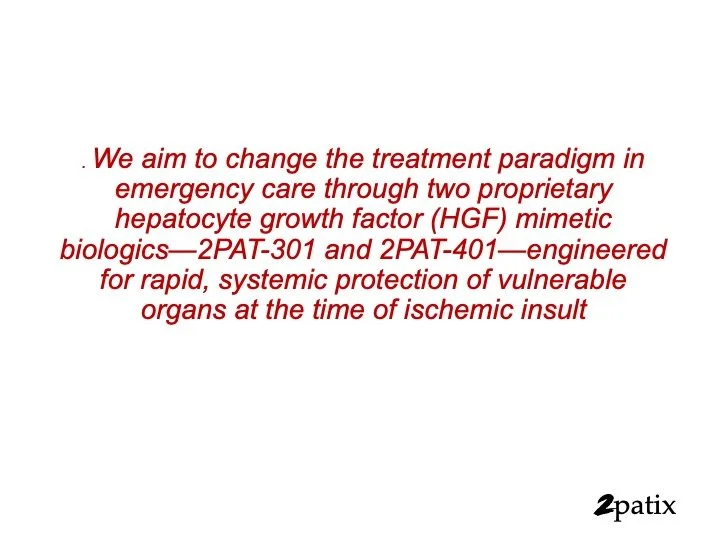 2PATIX is a regenerative emergency medicine company in Houston, TX, developing a targeted biologics platform for myocardial infarction and stroke.